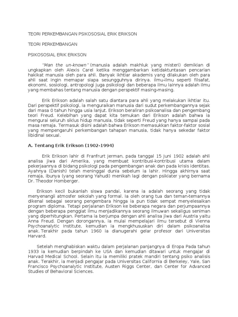 In the middle of them is this teori perkembangan psikososial erik erikson pdf that can be your partner. A Way of Looking at Things. Pada tahun 1950 Erikson membuat Childhood and Society analisis Maxim Gorky dan Adolph Hitler diskusi Kepribadian Amerika beberapa ringkasan teori Freudian dan Gandhis Truth yang memenangkan Award dan National Book Award.