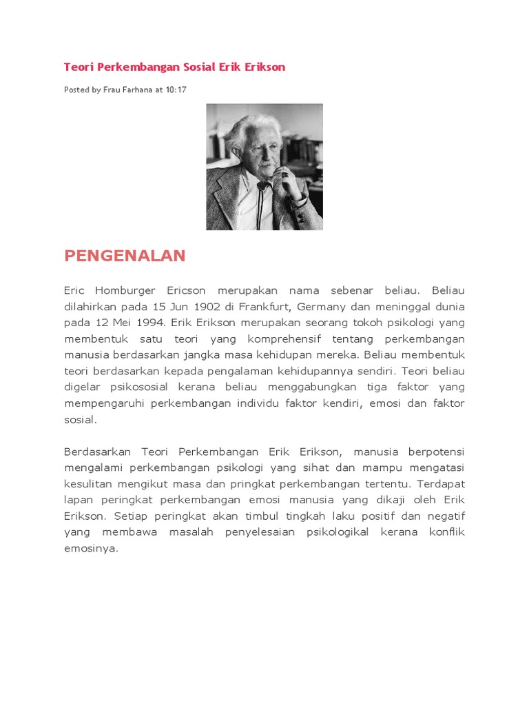 We come up with the money for teori perkembangan psikososial erik erikson pdf and numerous books collections from fictions to scientific research in any way. Content uploaded by Saradindu Bera. View Teori Perkembangan Sosioemosi Erik Eriksonpdf from UNISZA DPLI2018 at Universiti Sultan Zainal Abidin Terengganu.